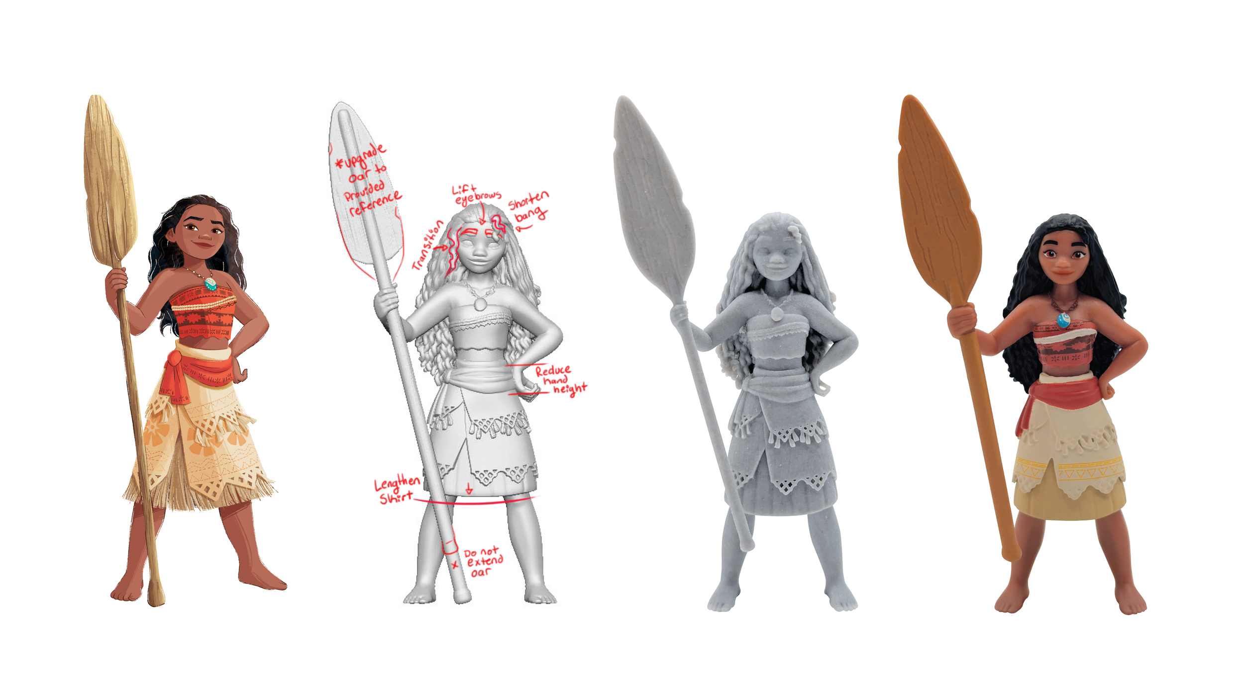 Moana figure process from concept > digital sculpt > prototype > production sample